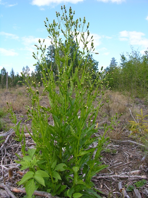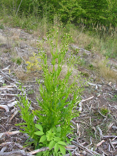 Erechtites jastrzębcowaty to roślina, która osiąga rozmiary od 30 do 100 cm, ale niekiedy może dochodzić nawet do 2,5 m wysokości. Jeden okaz wykształca średnio 253 koszyczki kwiatowe, z których każdy wytwarza 130 nasionek. Przeciętnie więc każda roślina w sezonie wegetacyjnym może wyprodukować ponad 30 tys. nasion. W Polsce gatunek ten stwierdzono głównie na zrębach, uprawach leśnych, wzdłuż dróg i na terenach ruderalnych. W lesie najczęściej rośnie na siedliskach borów wilgotnych i świeżych oraz rzadziej w grądach. Stwierdzono również pojedyncze okazy na torfowiskach przejściowych (Dajdok Z. i Pawlaczyk P. 2009).